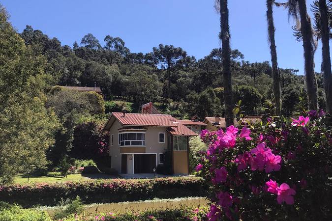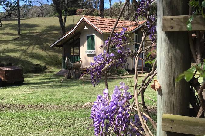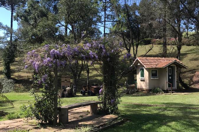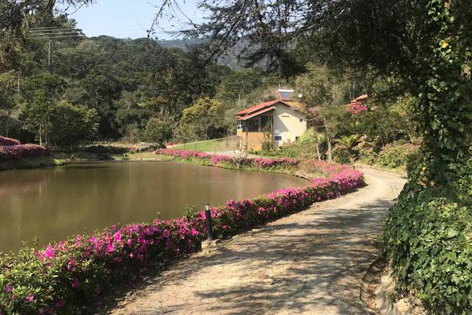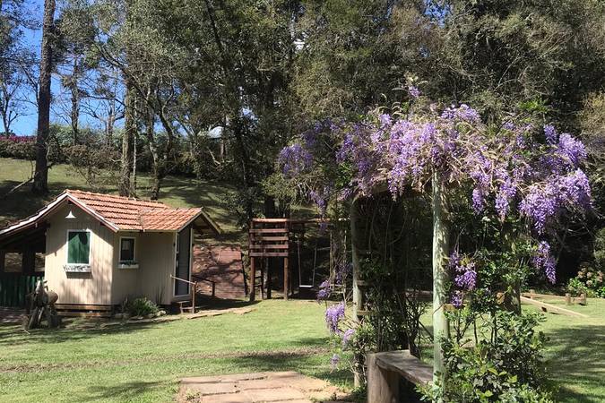 Com mobiliário rústico e aconchegante, possui estrutura completa: cozinha equipada, churrasqueira, fogão a lenha e forno iglu para pizza.