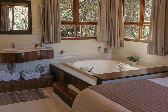 Você e seu amor podem curtir todo aconchego e conforto dos nossos chalés com hidro, depois de relaxar no deck com vista para o lago, caminhar ou pedalar pelas trilhas em meio à natureza, curtir partidas na sala de jogos e degustar um bom vinho do nosso bar em frente à lareira.