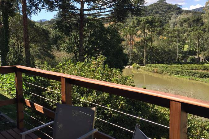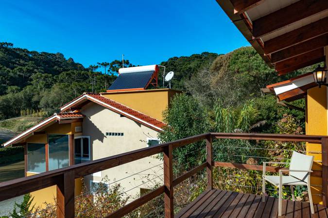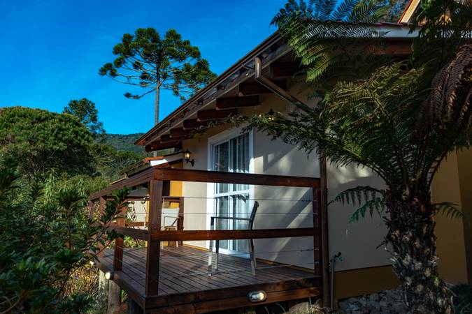 O chalé ainda conta com deck privativo e estacionamento próximo gratuito e exclusivo para o chalé.