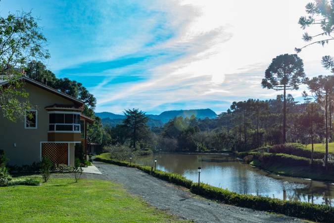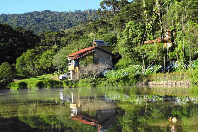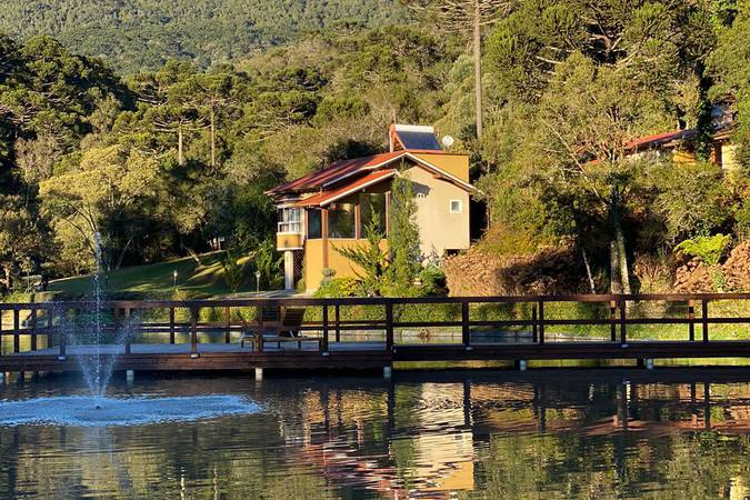 O Chalé Casal Super Luxo N° 9 é o único que possui garagem coberta, máquina de café com 9 cápsulas e localização privilegiada com ampla vista para o lago.